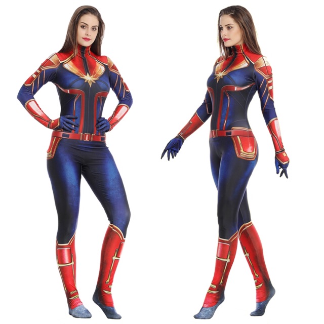 Captain Marvel Ms Marvel Cosplay Costume Bodysuit Zentai Suit For